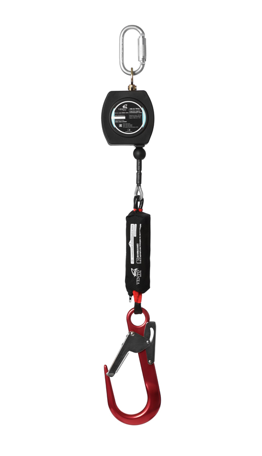 Механизм втягивания троса уменьшает глубину возможного падения, осуществляет быструю блокировку, снижая нагрузку и риск получения травмы при падении.