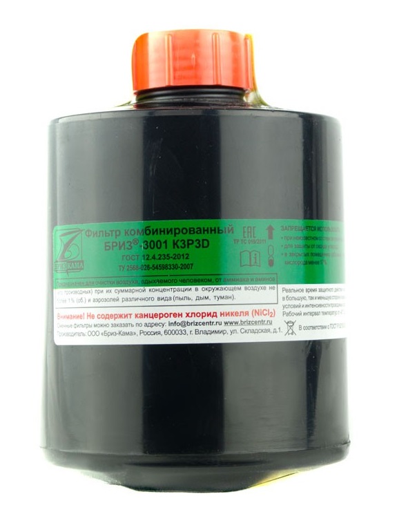 Фильтр комбинированный Бриз-3001 K3P3D применяtтся для очистки вдыхаемого загрязненного воздуха от: