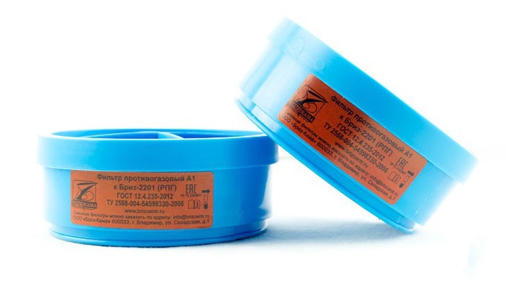 Фильтры противогазовые A1 к респиратору Бриз-2201 РПГ-67 применяются для очистки загрязненного воздуха от: