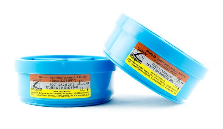 Фильтр противогазовый A1B1E1 к респиратору Бриз-2201 РПГ-67 применяются для очистки загрязненного воздуха от: