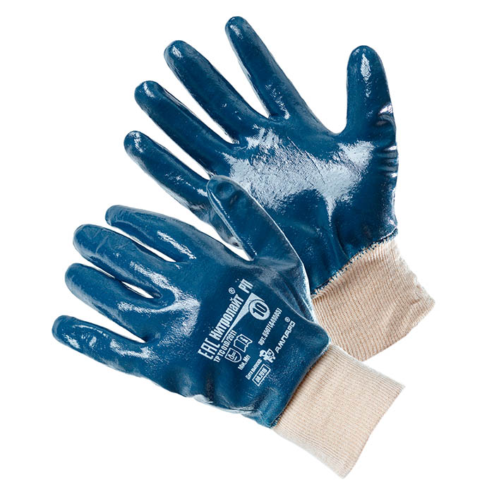 Высокопрочные трикотажные перчатки с двухсторонним резиновым покрытием для защиты от механических воздействий.