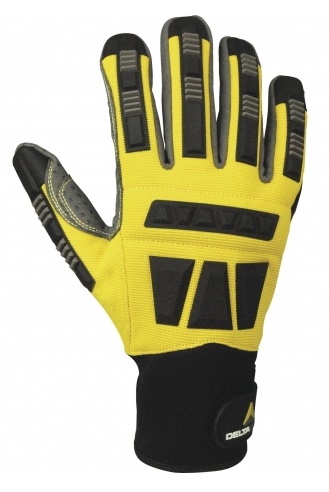 Трикотажные перчатки с защитными накладками. Манжета длиной 8 см из неопрена с регулировкой объема при помощи контактной ленты. Дополнительные гибкие рельефные накладки из неопрена на тыльной стороне перчатки и пальцах. Дополнительные защитные накладки из ПВХ с точечным покрытием: между большим и указательными пальцами и на ладонной части. Перчатки прошиты кевларовыми нитками. Максимальная устойчивость к истиранию; высокая устойчивость к порезам, разрывам. Устойчивость к ударному воздействию в области запястья.