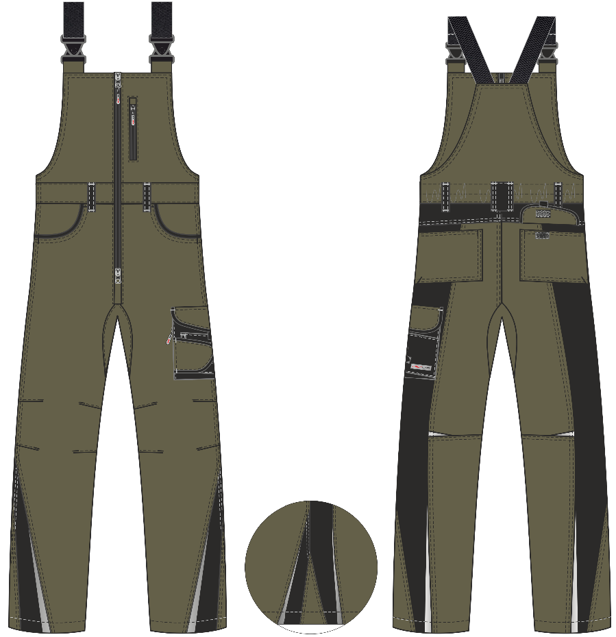 - Конструкция с анатомическими вытачками в области колена и ластовицей в шаговом шве для максимальной свободы движений и износостойкости