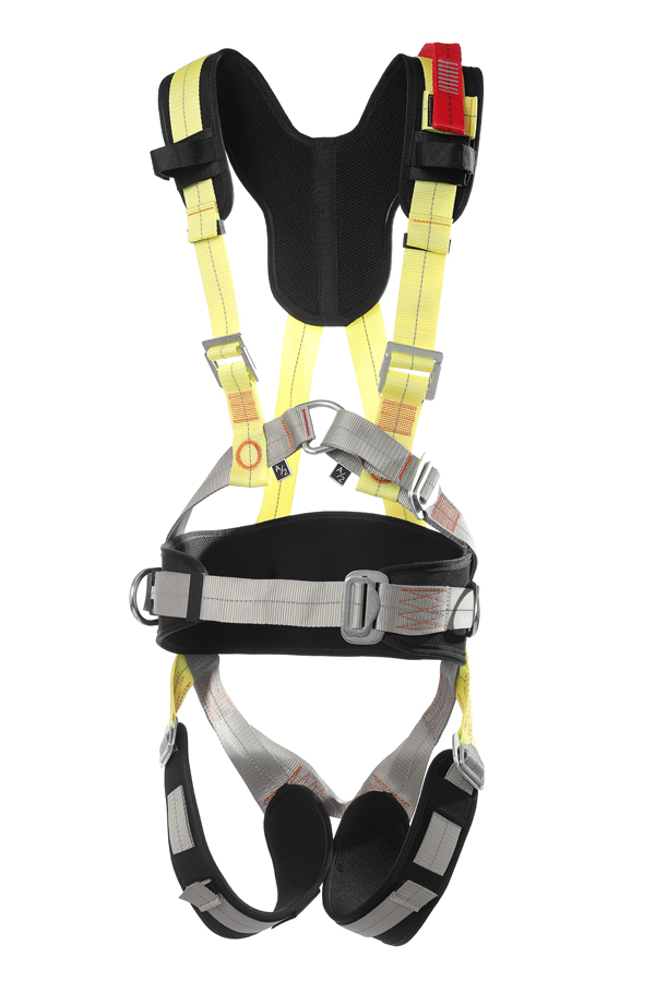Точка крепления, находящаяся сзади на Х-образных плечевых лямках, регулируется по высоте для правильного расположения и обеспечения максимального уровня безопасности при остановке падения. Данная точка имеет специальный удлинитель для возможности соединения с другими устройствами, в том числе в случае надевания привязи под спецодежду.