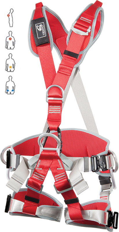 - большое количество точек крепления позволяет использовать привязь как страховочную, удерживающую и привязь для позиционирования