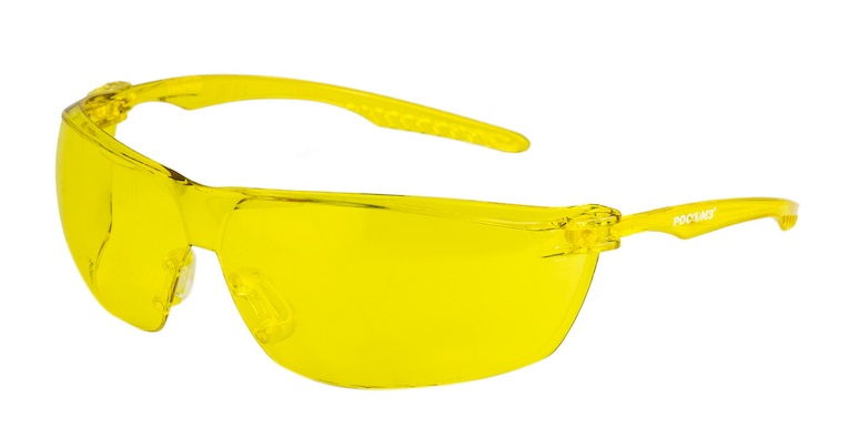 Ультрасовременные очки универсального применения со сферическими защитными стеклами из оптически прозрачного поликарбоната янтарного цвета сверхтвердым двусторонним водостойким покрытием для защиты от абразивов.