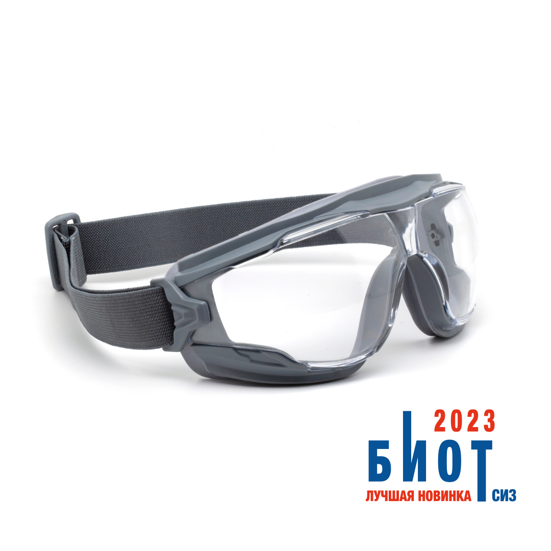 Двухкомпонентный мягкий обтюратор обеспечивают панорамный обзор, удобную посадку и возможность использования с другими СИЗ: касками, наушниками, фильтрующими полумасками.