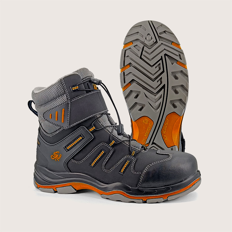 Подошва ПУ-Нитрил — маслобензостойкая (МБС), устойчивая к воздействию агрессивной среды – масел, нефтепродуктов, изготовлена из износостойкой, термостойкой (+300°С при кратковременном (60 с) контакте с нагретыми поверхностями) резины на основе нитрильного каучука. Применяемый для литья подошвы нитрил обладает высокой эластичностью и гибкостью.