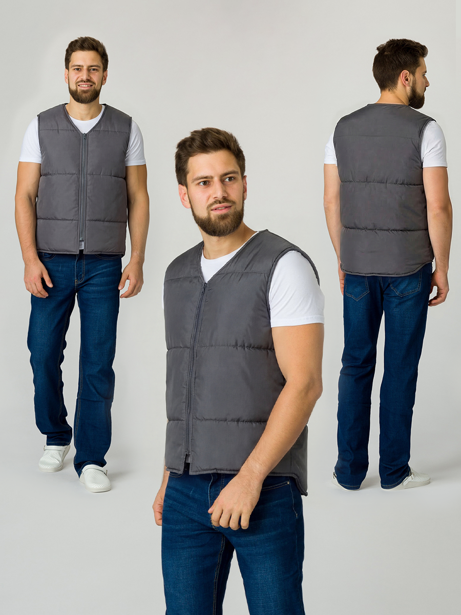 Жилет «Комфорт» отличается стильным внешним видом, удобным кроем и отличным качеством материалов. Базовый стеганый жилет является универсальным и подходит как женщинам, так и мужчинам. Классический утепленный жилет относится к базовым элементам гардероба, выступая модным аксессуаром на прогулках или в рабочей деятельности. Благодаря плотной ткани с влагоотталкивающей пропиткой жилетка надежно защищает от осадков и отличается износостойкостью. Утеплитель синтепон помогает сохранить тепло, а удлиненная спинка спасает от переохлаждения поясничный отдел. Теплый жилет может сочетаться с большинством предметов гардероба: джинсами, шортами, спортивными или рабочими брюками. Горловина с U-образным вырезом помогает надевать под жилет модные худи или другую одежду с капюшоном. Безрукавка дополняется удобным внутренним карманом для хранения важных мелочей и записей.